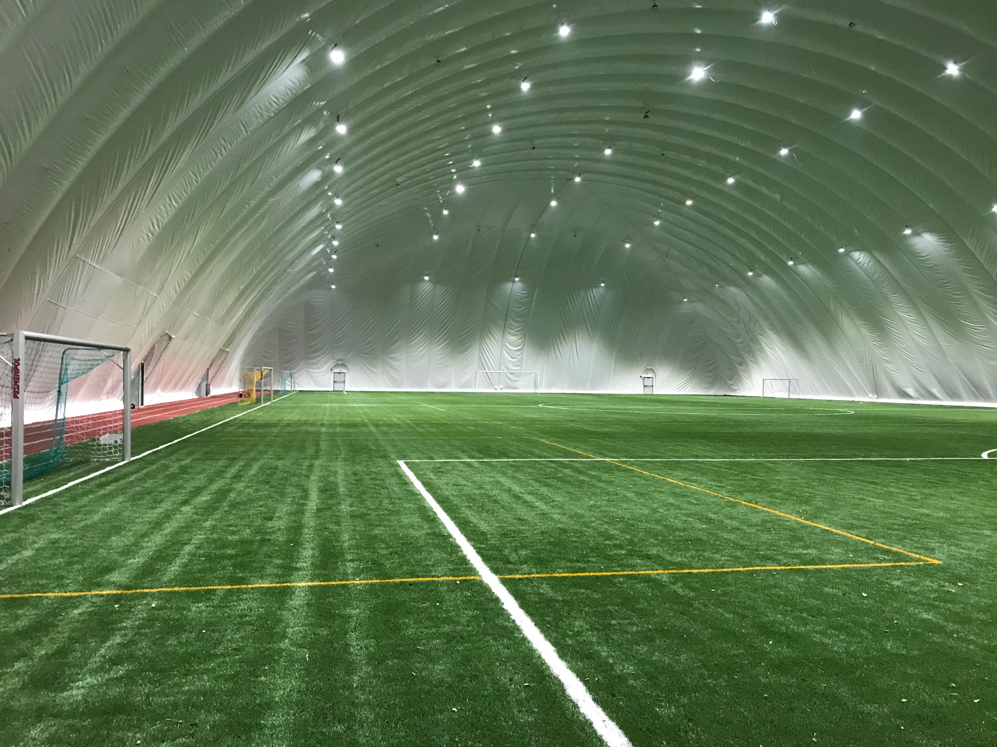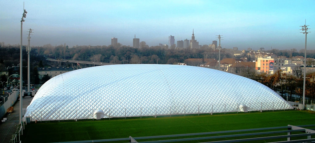 Największą jak dotąd, bezlinowa, dwupowłokowa hala pneumatyczna w Polsce powstała w Białymstoku. Obecnie trenują pod nią piłkarze Jagiellonii Białystok.