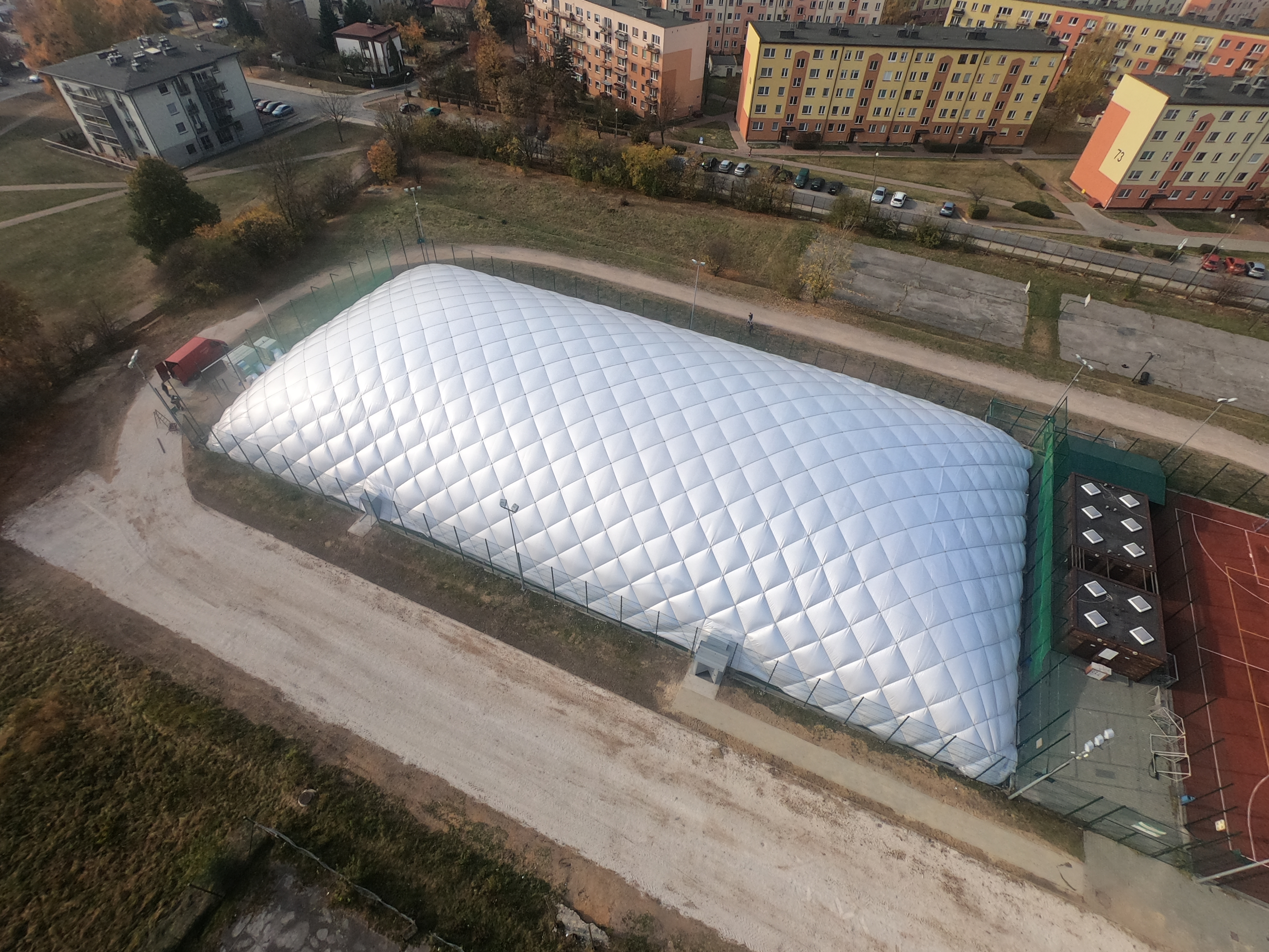 Hala pneumatyczna to konstrukcja zaprojektowana w połowie XX wieku. Jako jedni z prekursorów na polskim rynku, produkujemy tego rodzaju obiekty od 2003 roku. Dzięki naszym autorskim rozwiązaniom możliwe jest wyprodukowanie i posadowienie hali pneumatycznej o dowolnych rozmiarach, nawet takiej, która będzie zadaszać pełnowymiarowe boisko piłkarskie. Obiekty sportowe zadaszone halą pneumatyczną stwarzają możliwość całorocznego treningu, niezależnie od panujących warunków atmosferycznych.